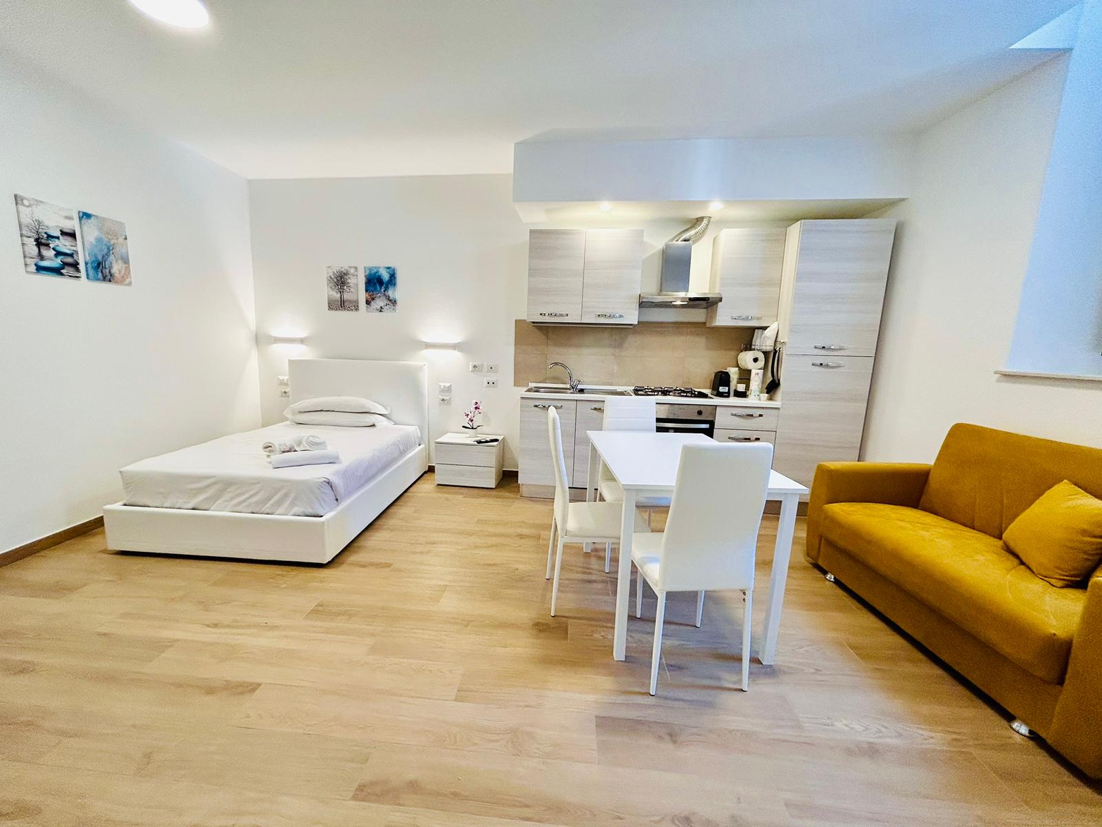 I nostri appartamenti sono nuovissimi e completamente arredati per garantire il massimo comfort durante la vostra permanenza. Ogni unità dispone di una cucina completamente attrezzata e una macchina per il caffè Nespresso per rendere il vostro soggiorno il più piacevole possibile.